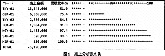- 販売店コードで集計して印刷した売上分析表の例を図2に示す。