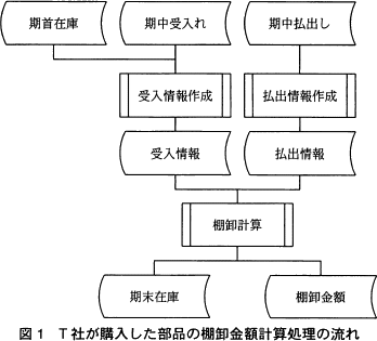 図1に,T社が購入した部品の棚卸金額計算処理の流れを示す。この処理で扱うファイルは,すべて順ファイルである。