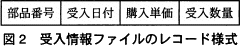 - 受入情報ファイル現在のレコードの部品番号