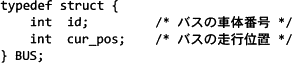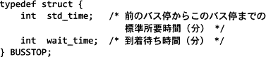 - 構造体 BUSSTOP の構造は,次のとおりである。