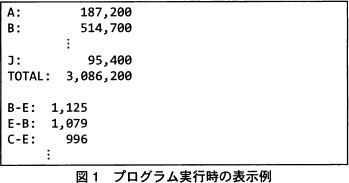 このプログラムは,売上ファイルを読み込み,各ICの売上,及び利用区間とその利用台数を台数の多い順に10区間まで,図1に示す形式で表示する。
