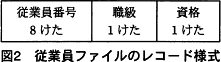 - 従業員ファイルは,従業員番号をキーとする,図2に示すレコード様式の索引ファイルである。