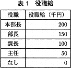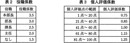 賞与=基本給×(役職係数+個人評価係数) - 役職係数は,表2に示すとおりである。