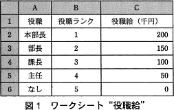 基本給計算の基となる役職ごとの役職給を登録した図1のワークシート"役職給"を作成した。