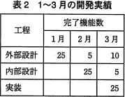 - 表1中の機能数とは,各月に作業を予定している機能の個数である。