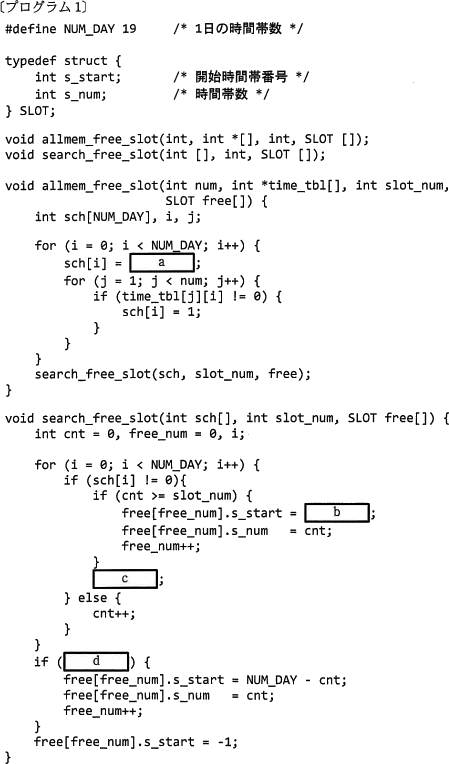 次のCプログラムの説明及びプログラムを読んで,設問1,2に答えよ。