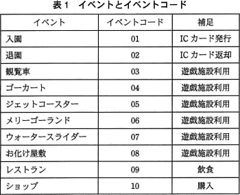 なお,この遊園地は10時に開園し,全ての入園者は20時になるまでに退園する。20時台の時刻が格納されることはない。 - 金額には,該当するイベントを利用した際の金額を格納する。 なお,入退園(イベントコード01,02)の場合は,0を格納する。
