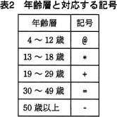 - 棒グラフを構成する各記号は,表2に示すとおり滞在者の年齢層と対応している。 記号一つは100人を表し,100人未満の端数は切り捨てる。