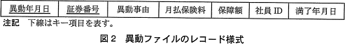 異動ファイルは,これまで発生した全ての異動事由を記録したものであり,そのレコード様式は図2のとおりである。
