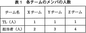 - 各チームのメンバーは,チームリーダー(以下,TLという)と担当者から構成される。各チームのメンバーの人数を,表1に示す。