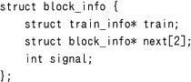 - 構造体 block_info は,鉄道模型の区間を表現する。