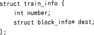 - 列車の終着駅を出口とする区間を表現した,構造体 block_info へのポインタである。