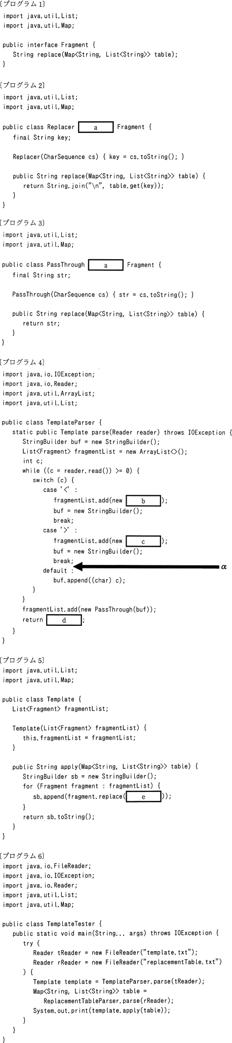 〔プログラム4〕TemplateParser クラスの空欄です。