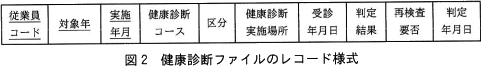 健康診断ファイルのレコード様式を,図2に示す。下線付きの項目は,主キーである。