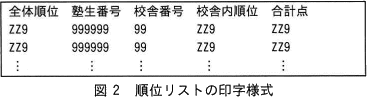 - 順位リストは,図2に示す印字様式である。見出しは印刷済みとする。